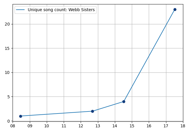 23 songs (5.75 songs/event):