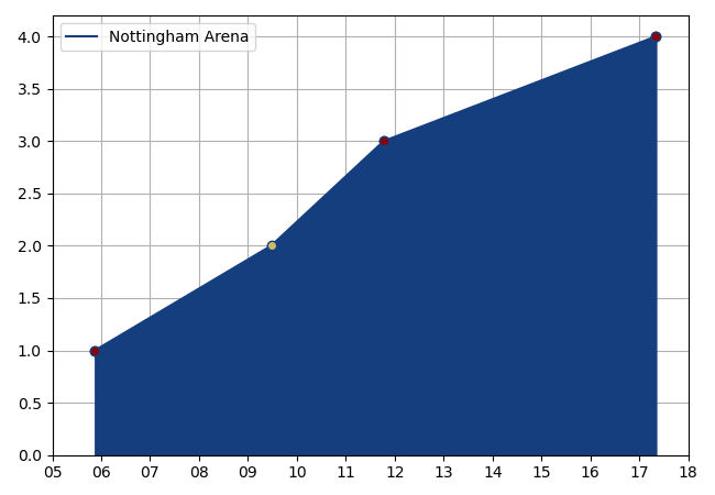 - Most gigs in a year: 1 (2005,2009,2011,2017)